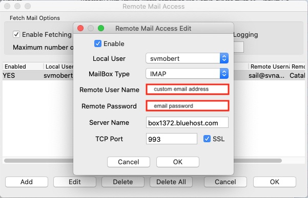 10.) Click OK to Save, and click OK to close the Remote Mail Access window.
